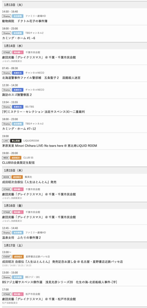 1/13〜1/17までのスケジュールをお届けします。 ※現時点で確認可能な範囲のみ。 (... -