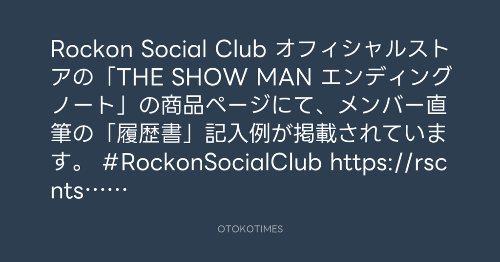 Rockon Social Club オフィシャルストアの「THE SHOW MAN エンディングノート」の... -
