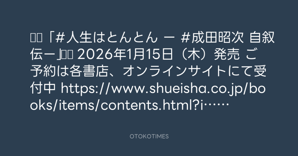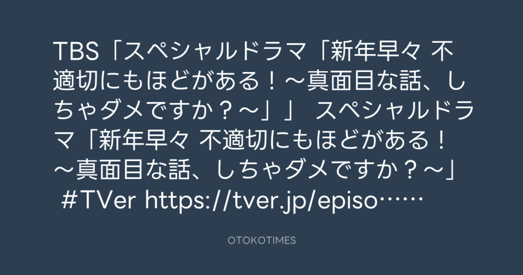 OTOKOTIMES @OtokoTimes1988 – 2:56・2026年1月5日