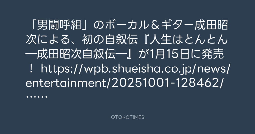 「男闘呼組」のボーカル&ギター成田昭次による、初の自叙伝『人生はとんとん―成田... -