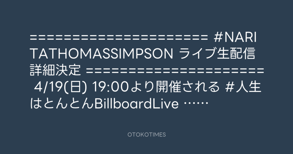 ===================== #NARITATHOMASSIMPSON 🥁ライブ生配信 詳細決定🎸 ========... -