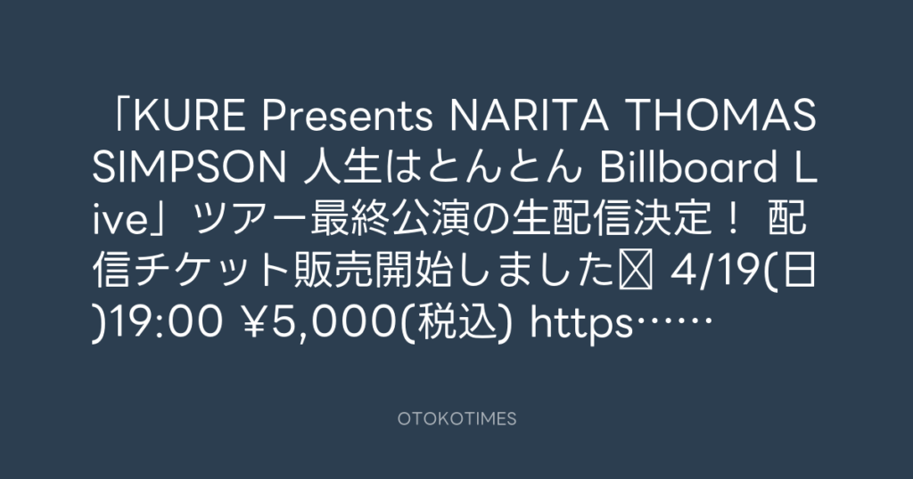 「KURE Presents NARITA THOMAS SIMPSON 人生はとんとん Billboard Live」ツアー最... -