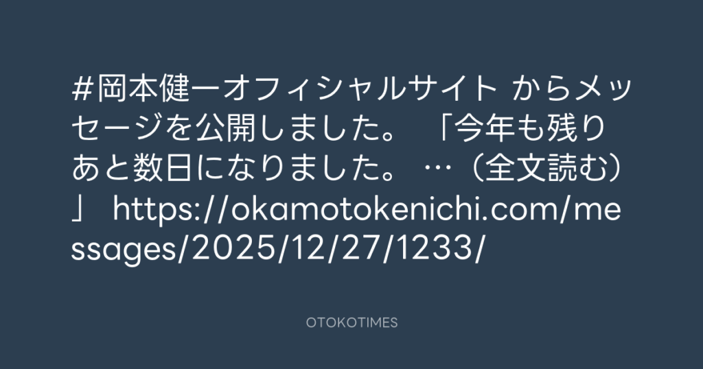 #岡本健一オフィシャルサイト からメッセージを公開しました。 「今年も残りあと数... -