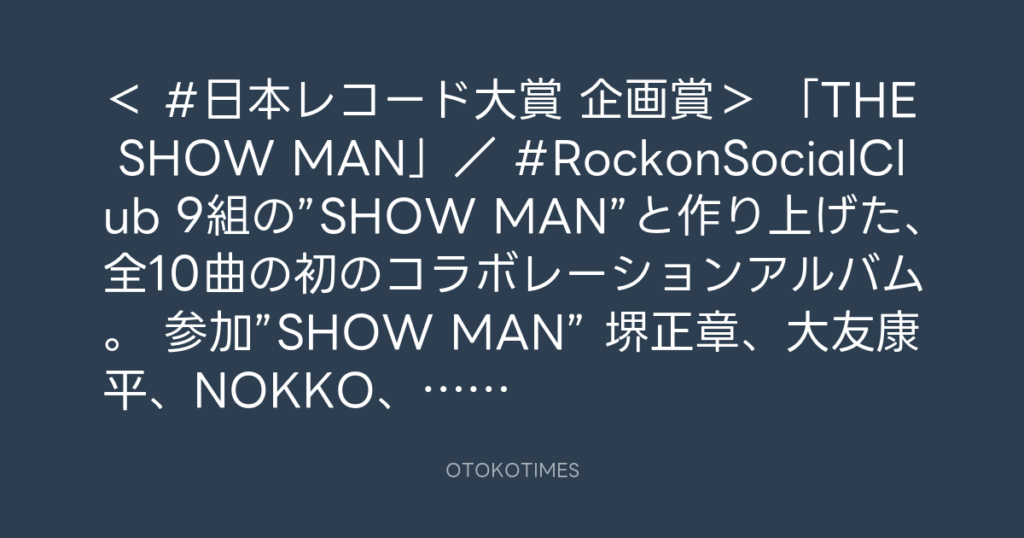 < #日本レコード大賞 企画賞> 「THE SHOW MAN」/ #RockonSocialClub 9組の”SHOW... -