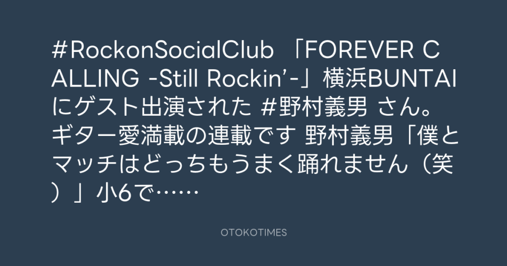 #RockonSocialClub 「FOREVER CALLING -Still Rockin’-」横浜BUNTAIにゲスト出演さ... -