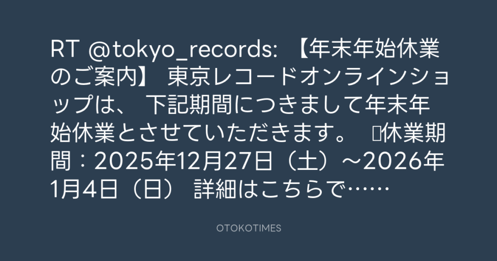 東京レコード @tokyo_records – 0:25・2025年12月25日